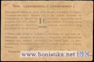 Чек гарантированный (обеспеченный)10 рублей малой формы