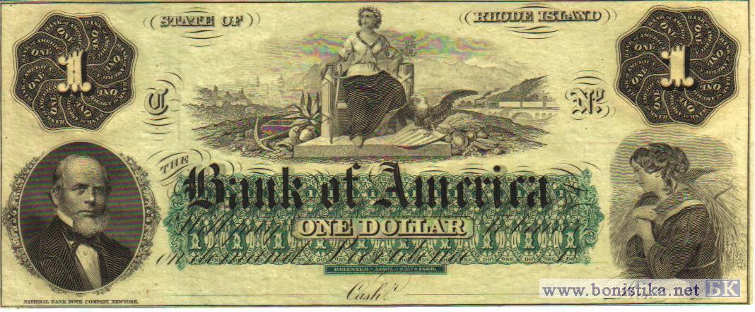 1850-ые ...1860-ые, Bank of America,Rhode Island, одностороняя, бланк