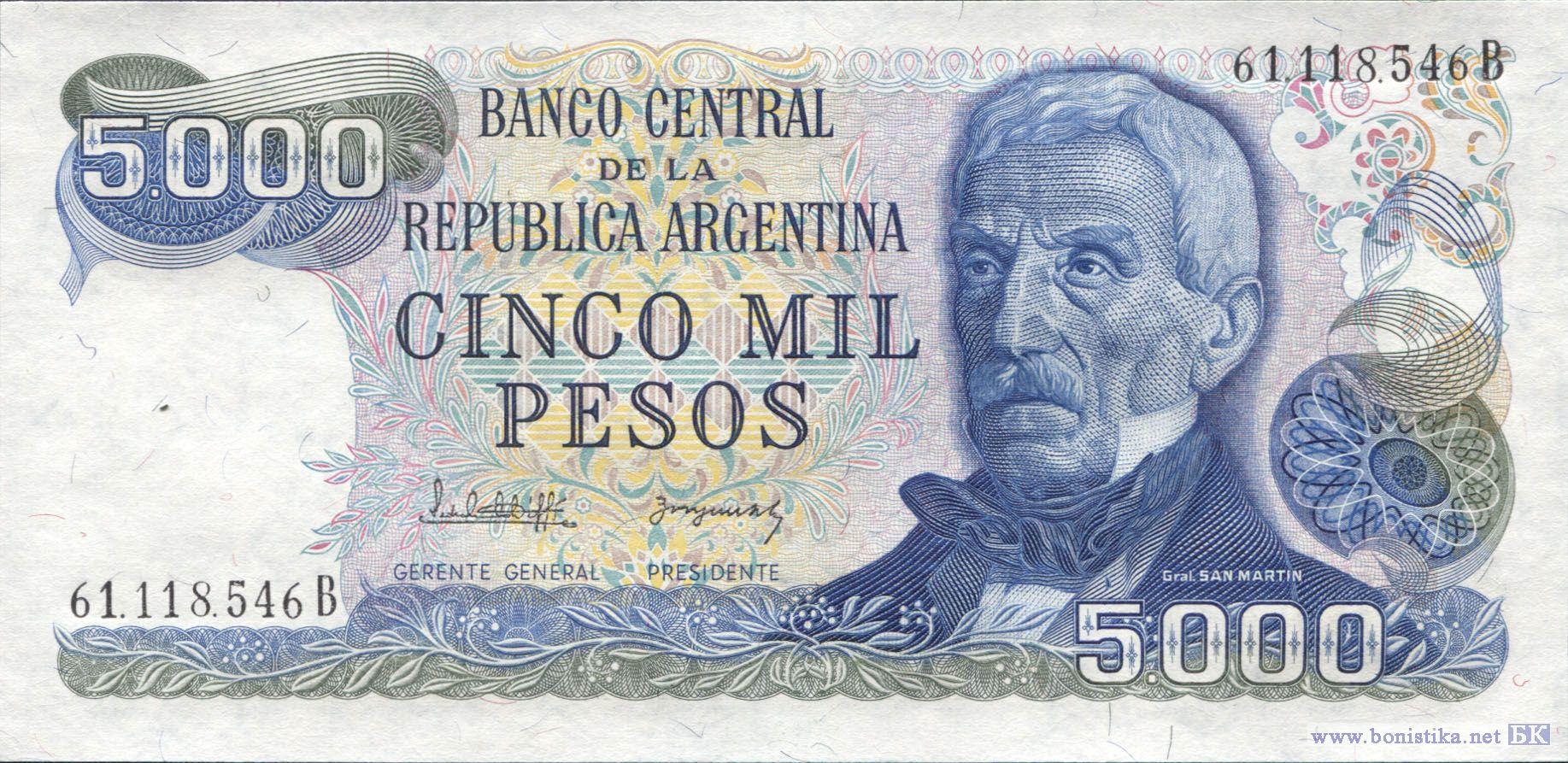 5000 Pesos (тип b2), 1977