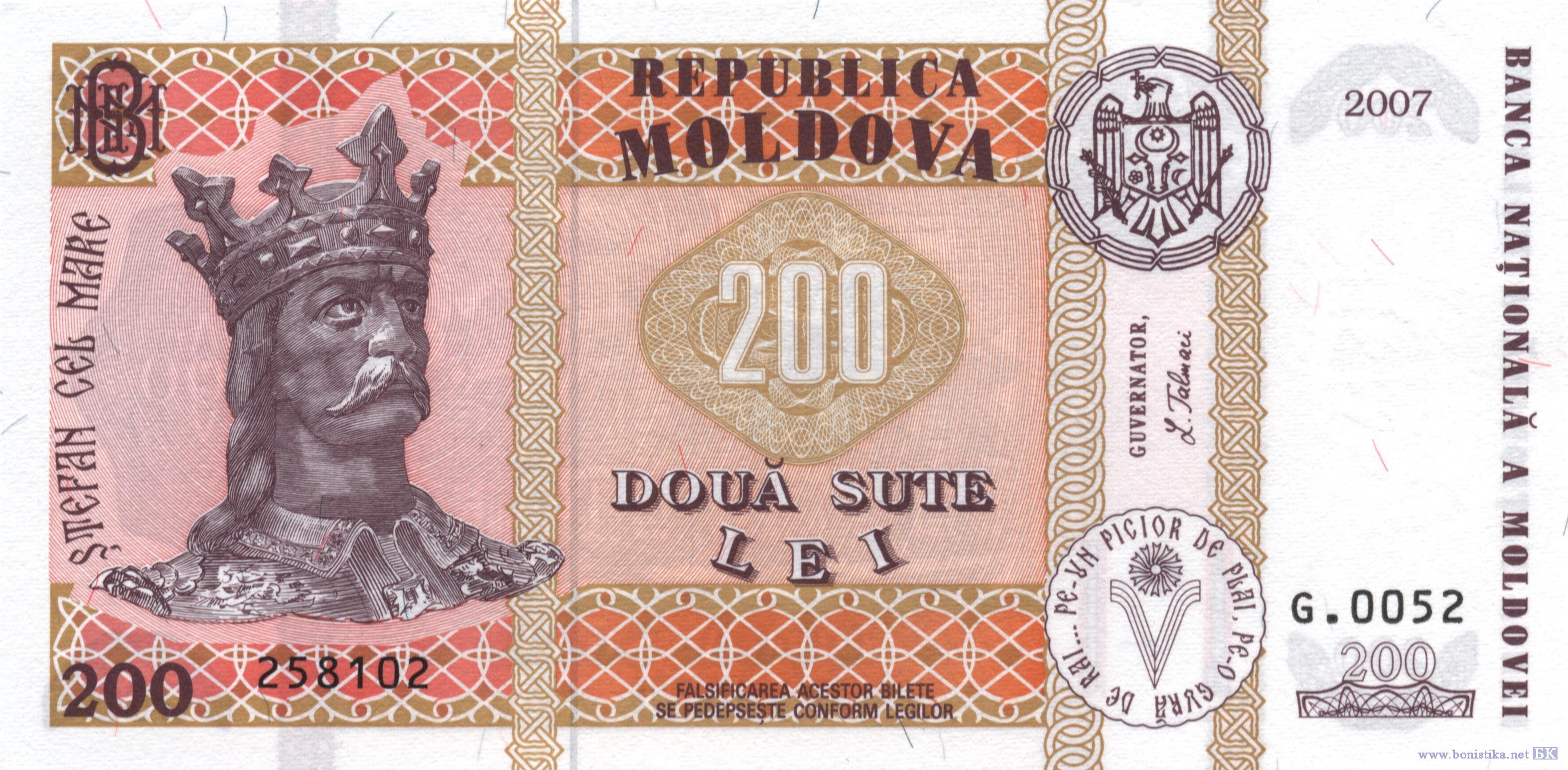 Отпечатана на специальной бумаге, содержащей водяной знак изображающий портрет Штефана чел Маре и внедренную вертикальную металлизированную нить.