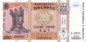 Аверс: Государственный герб Республики Молдова, название эмиссионного банка "BANCA NAŢIONALĂ A MOLDOVEI", надпись "REPUBLICA MOLDOVA", портрет Штефана чел Маре, многоцветный национальный орнамент, три вертикальных декоративных элемента, центральный гильош, номинальная стоимость в цифрах и буквах, художественно оформленная аббревиатура "BNM", факсимиле "GUVERNATOR, L. Talmaci", надпись по кругу "PE-UN PICIOR DE PLAI, PE-O GURA DE RAI...", стилизованное изображение литеры "V", год выпуска, номер и серия банкноты, надпись "FALSIFICAREA ACESTOR BILETE SE PEDEPSEŞTE CONFORM LEGILOR".