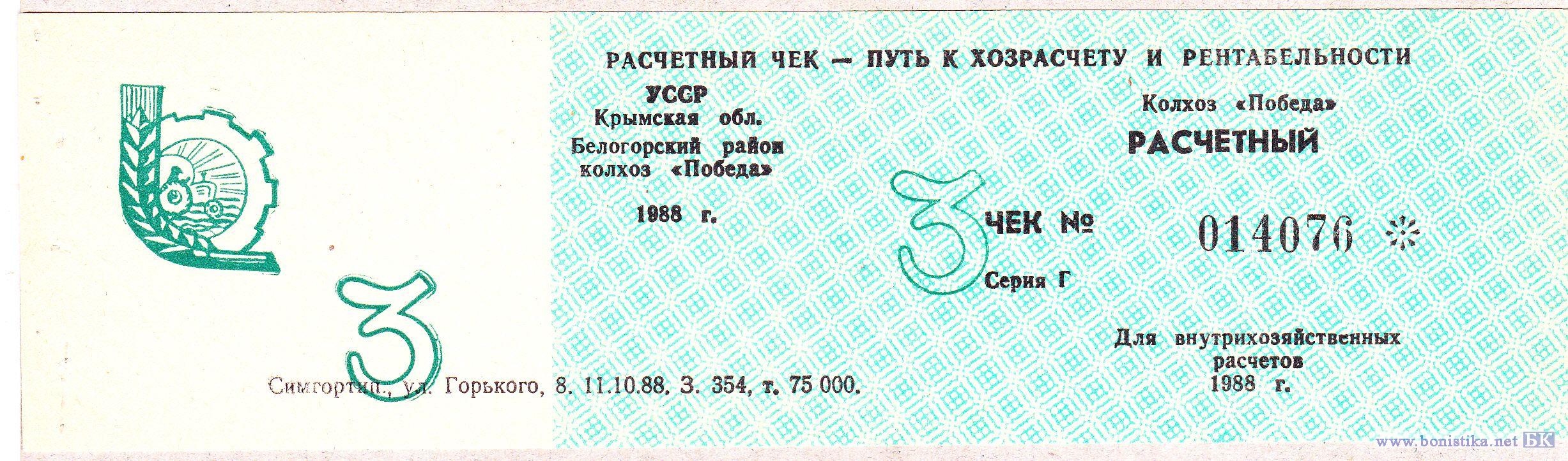 Чек. УССР, Крымская обл., Белогорский р-он, колхоз «Победа».