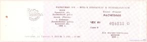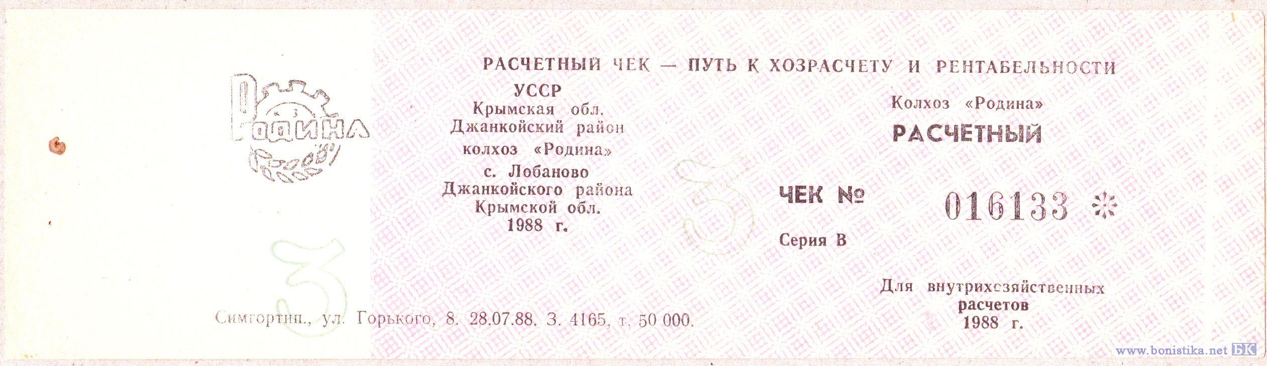 Расчётный чек. УССР, Крымская обл., Джанкойский р-он, с.Лобаново, колхоз «Родина»