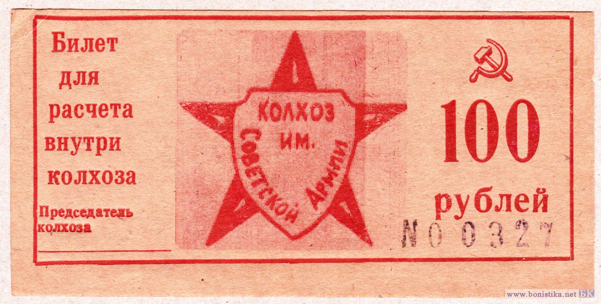 Билет для расчёта внутри колхоза. Краснодарский край, Крымский р-он, колхоз им. Советской Армии.