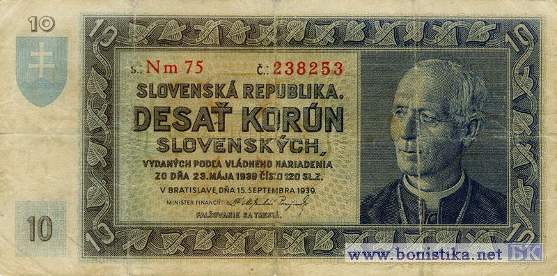 10 Korún Slovenských, 1939