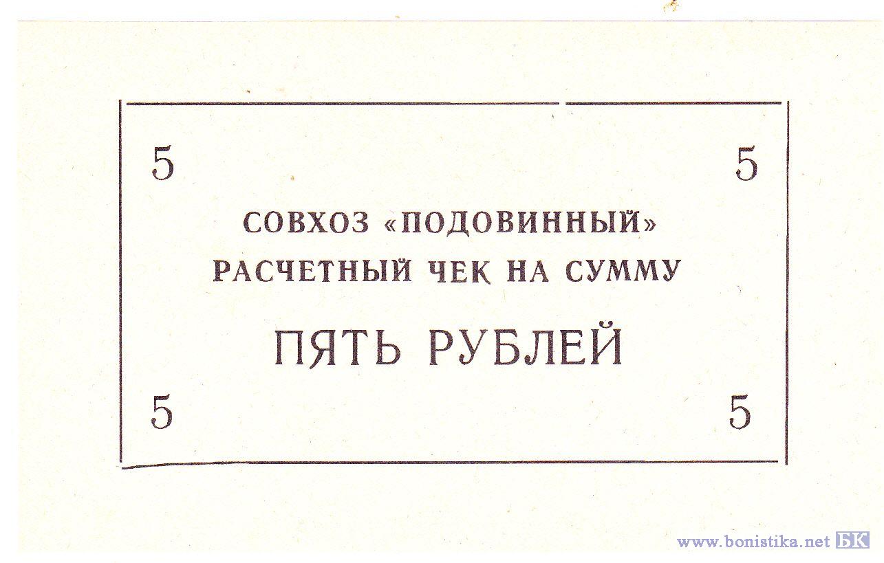 Расчётный чек. Челябинская обл, Октябрьский р-н, совхоз «Подовинный»