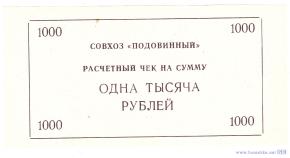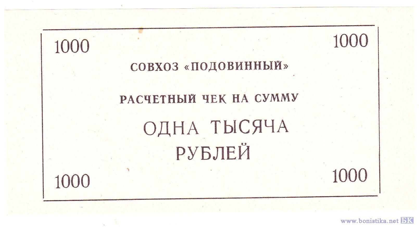 Расчётный чек. Челябинская обл, Октябрьский р-н, совхоз «Подовинный»
