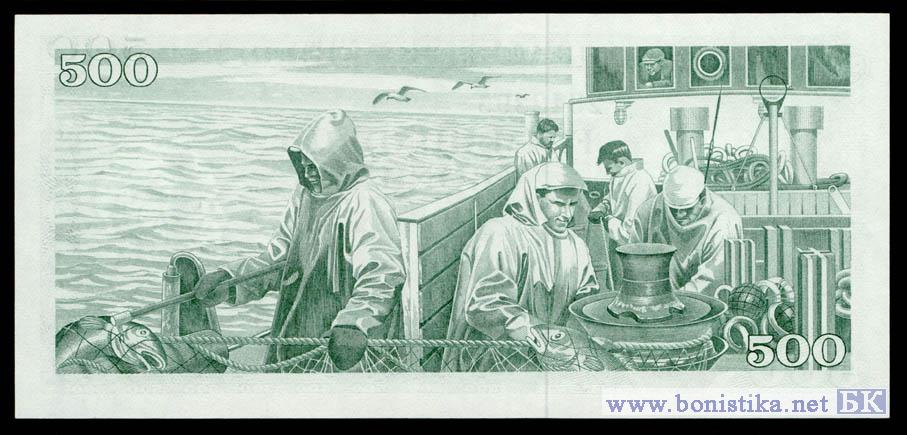 Вариант подписей №38: D.Olafsson-J. Nordal. Поэт, президент банка, первый премьер-министр Ханнес Тордур Петурссон Хафстейн. Рыбаки.
