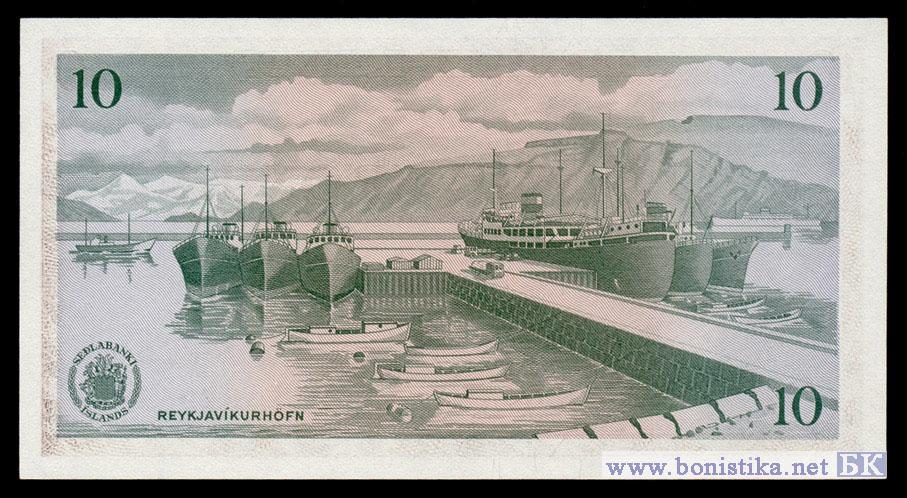 Вариант подписей №34: J. Nordal-J.G.Mariasson . Государственный деятель, ученый, просветитель Йоун Эйрикссон. Суда в порту г. Рейкьявик.