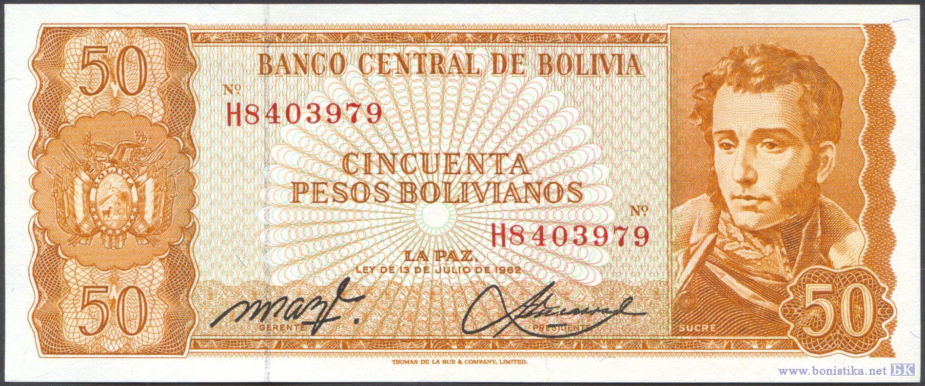 50 Pesos Bolivianos (тип 2), 1962