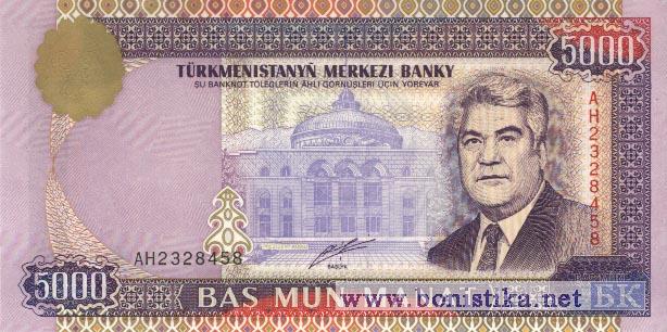 Аверс: Портрет С.Ниязова на фоне Президентского дворца. Реверс: Герб Туркменистана.