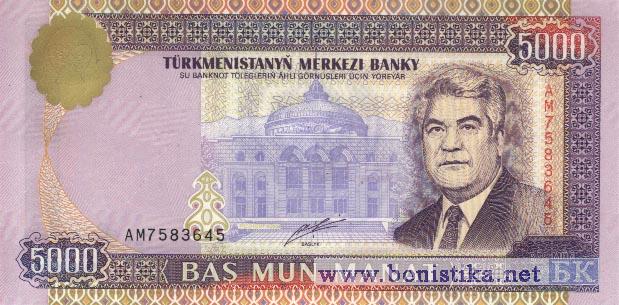 Аверс: Портрет С.Ниязова на фоне Президентского дворца. Реверс: Герб Туркменистана.