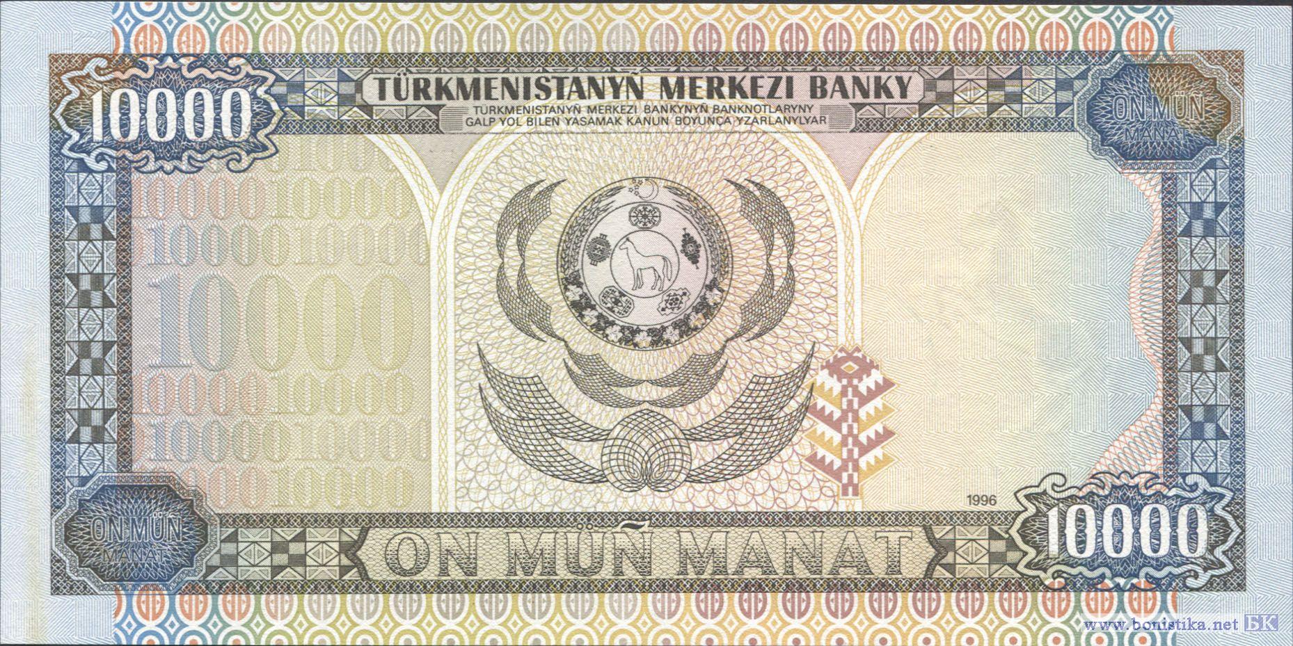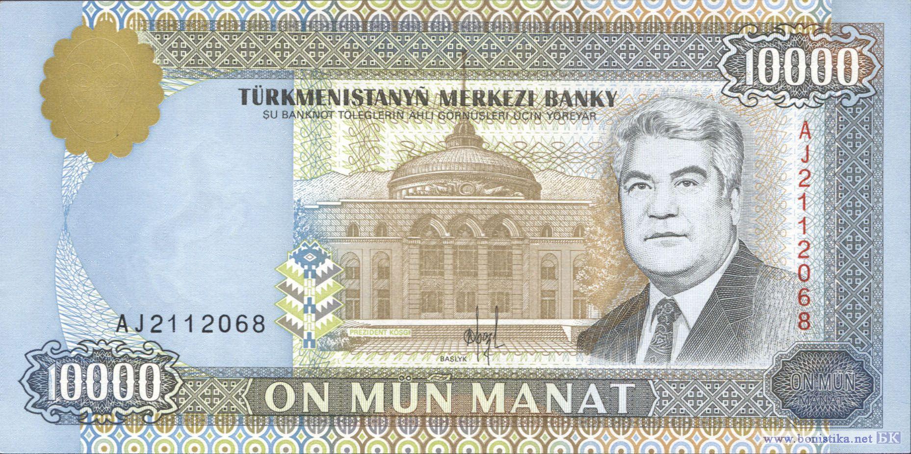 Аверс: Портрет С.Ниязова на фоне Президентского дворца. Реверс: Герб Туркменистана.