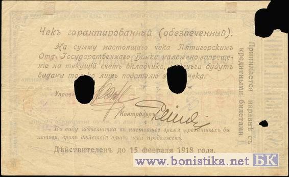 Чек гарантированный (обезпеченный), с трехсторонней рамкой. Срок или штамп продления на Рв сер. Д, ср. 15.II.18