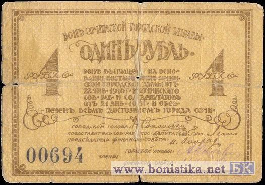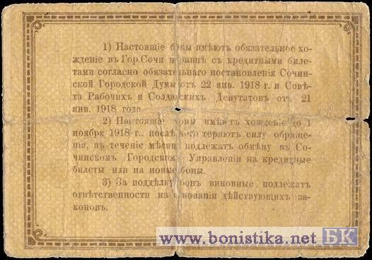 1 р. Город. голова Н.Сокольский, 1918