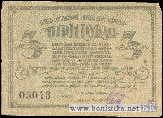 3 р. Город. голова Н.Сокольский, 1918