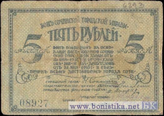 5 р. Город. голова Н.Сокольский, 1918