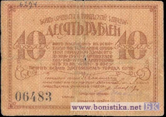 10 р. Город. голова Н.Сокольский, 1918