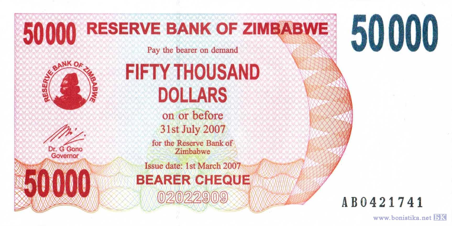 Вариант подписи № 5: Gideon Gono. Принтер: FPR - Fidelity Printers and Refiners Harare.