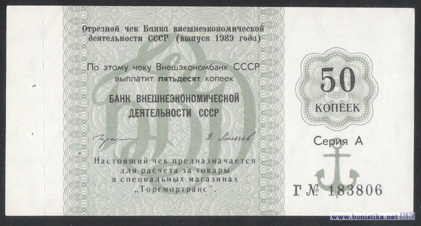 Отрезной чек Банка внешнеэкономической деятельности СССР