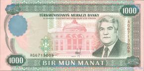 Аверс: Портрет С.Ниязова на фоне Президентского дворца.