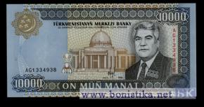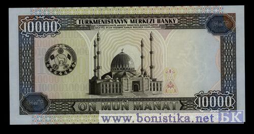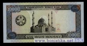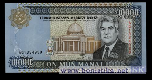 Аверс: Портрет С.Ниязова на фоне дворца Туркменбаши.