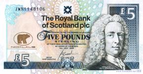 Памятная банкнота: Уход Джека Никлауса из гольфа. Логотип фирмы «Никлаус» изготавливающей оборудование для гольфа, очертания Эдинбургского замка на Замковой скале в городе Эдинбург, новые логотипы Королевского банка Шотландии, здание центрального офиса Королевского банка Шотландии (бывший дом Дандаса) и бронзовая статуя героя Пиренейской войны, вице-губернатора Королевского банка Шотландии генерала Джона Хоупа, 4-го графа Хоуптауна, в древнеримском одеянии, стоящего рядом с конём на площади Сент Эндрю в городе Эдинбург, старый герб Королевского банка Шотландии, дворянин, политик, юрист, первый управляющий банка лорд Арчибальд Кэмпбелл, 1-й граф Илэй, 3-й герцог Аргайл. Мячи для гольфа, здание Королевского и старинного гольф-клуба Сент-Эндрюса в городе Сент-Эндрюс в области Файф, американский профессиональный игрок в гольф Джек Уильям Никлаус (прозвище Золотой медведь) с кубком, Джек Никлаус, делающий удар на Открытым чемпионате США по гольфу, логотипы фирмы «Никлаус», таблица показателей игры в гольф, новый логотип Королевского банка Шотландии.