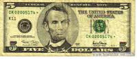 2001, 5 Dollars (K, Star) Replacement note