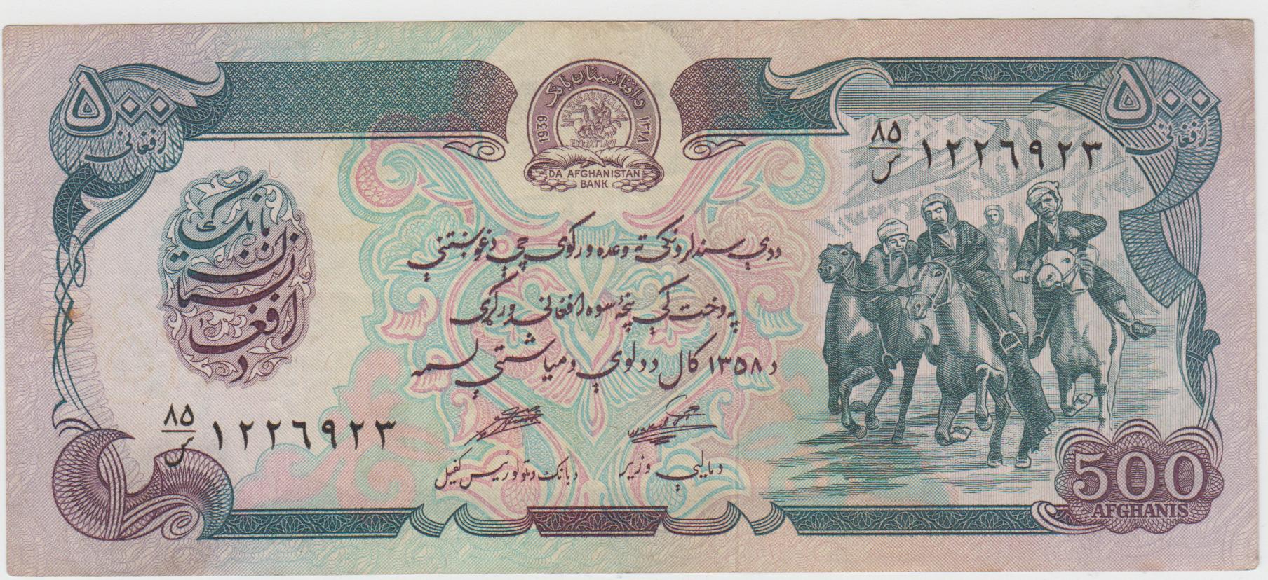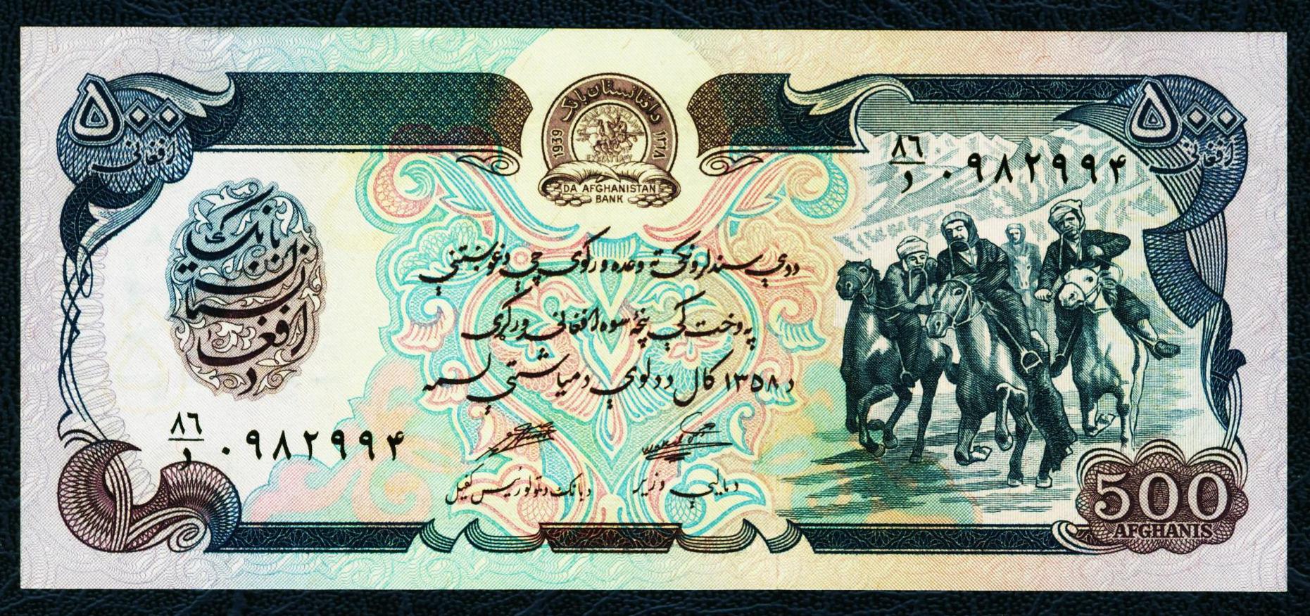 У 500 афгани отдельно от остальных есть 85-86 серии, у 100 афгани 87-88 серии, у 1000 афгани 83-84 серии. Если это замещение, то непонятно почему их по 2 серии у каждого номинала. Также у них под овалом есть водяной знак в виде герба Хальк от не выпущенных афгани 1978 г.