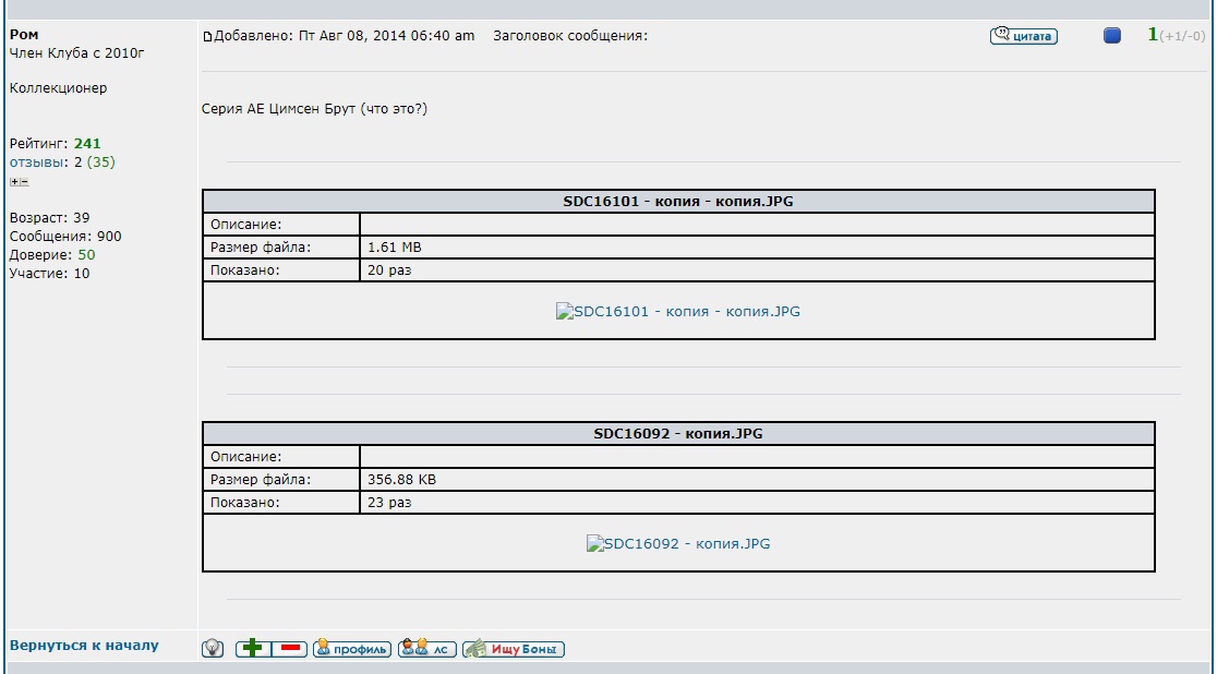 Конечно жалко. что информация, имеющая определённый интерес. исчезла с форума. Тем форум и ценнен. что отображает накопленный опыт по различным направлениям коллекционирования и отражает визуальную информацию этого опыта. Но... стихия. ничего не поделаешь.