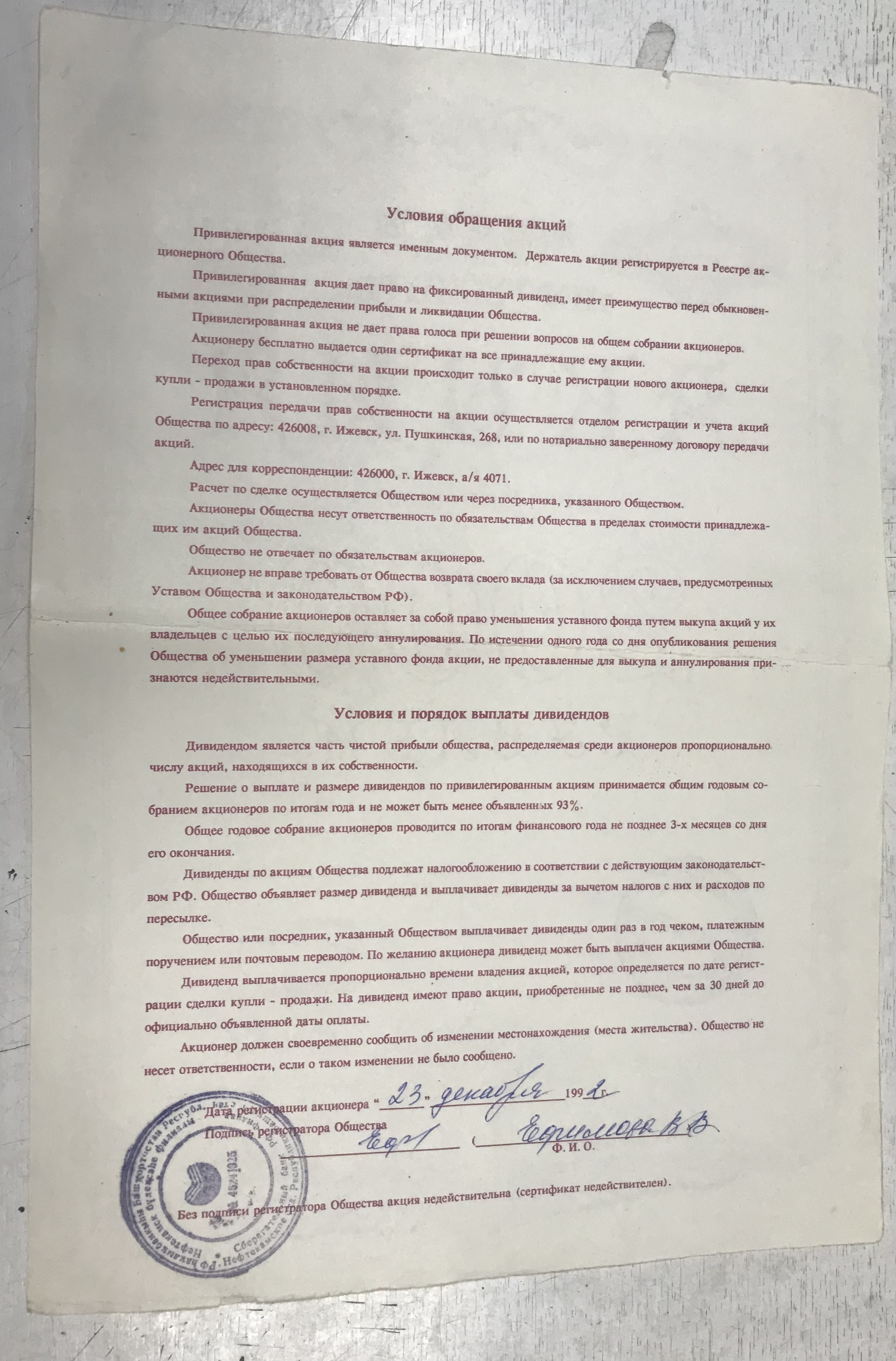 Привилегированная акция на 2000 рублей «Нефтесинтез»