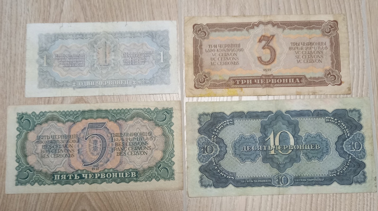 1 червонец "много" надорван, похоже все банкноты подрезаны, проверить бы размеры.