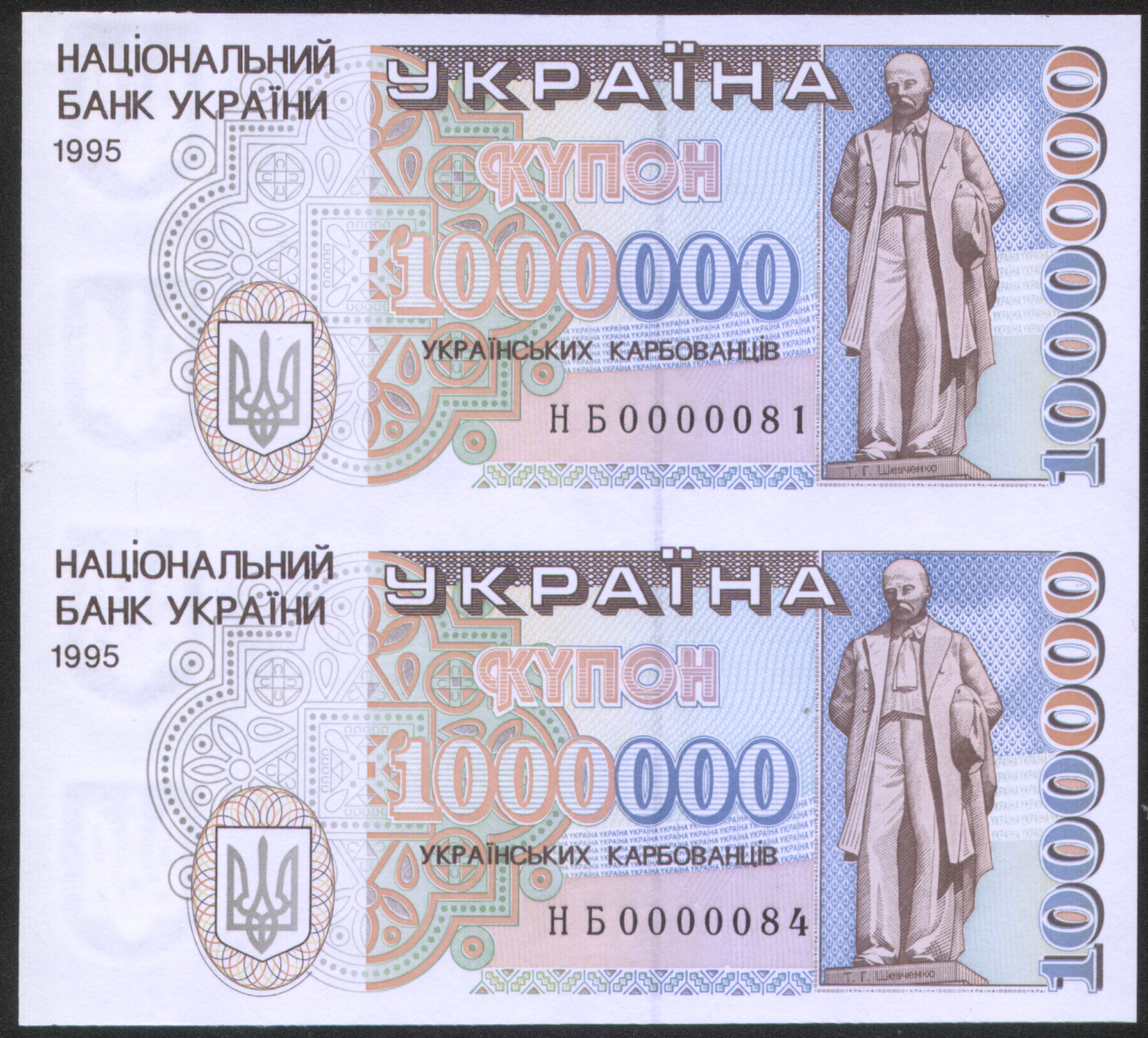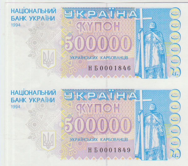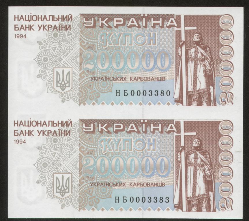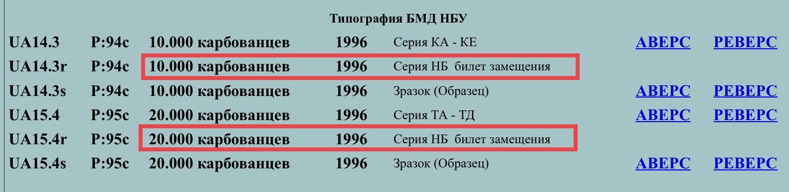 На тему серии НБ: в каталоге на Фоксе указано, что эта серия для некоторых выпусков карбованцев 1994-96 годов является серией замещения. Единственное изображение, которое там есть — 200.000 карбованцев — является банкнотой с разрезанного сувенирного листа (НБ 0004056). В связи с этим вопрос: не является ли утверждение о том, что серия НБ это серия замещения, ошибочным? Как мне представляется, БМД НБУ никогда не печатала банкноты замещения (они были только для выпусков произведенных CBNC и DLR)?
