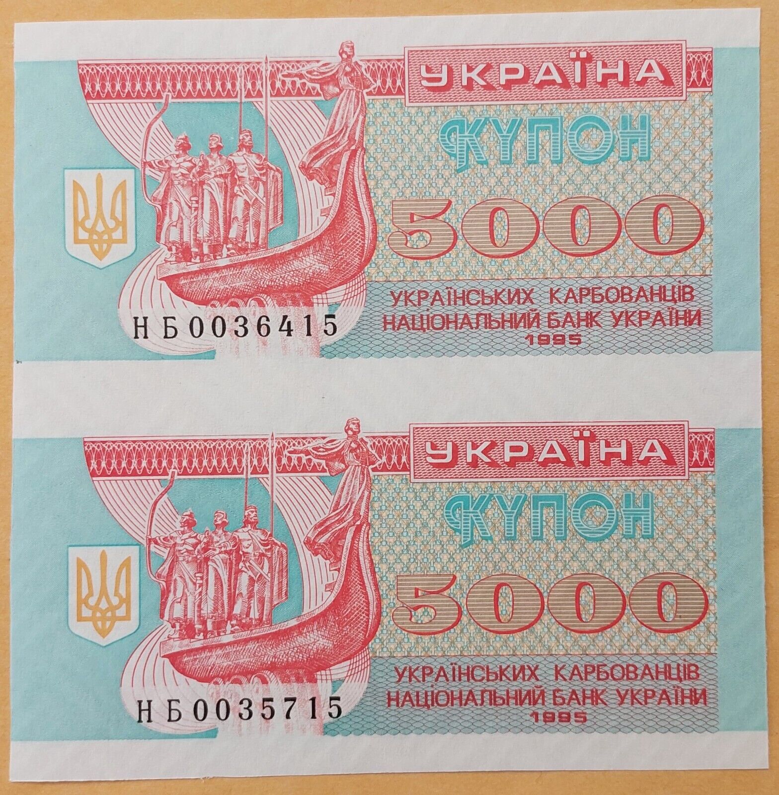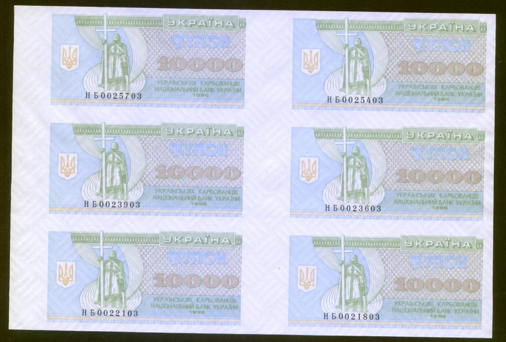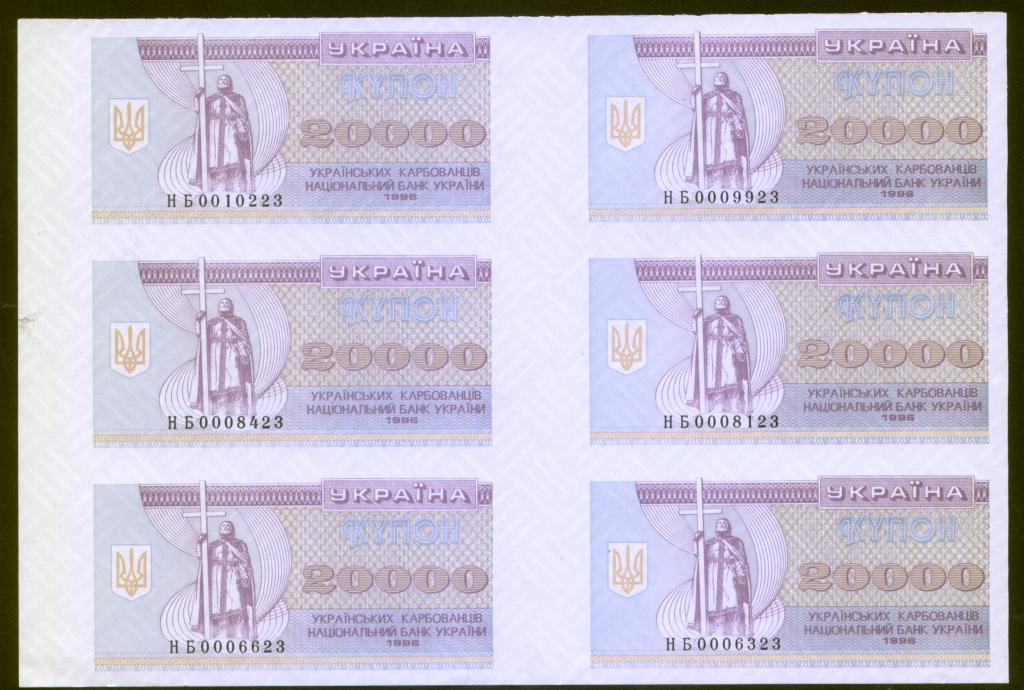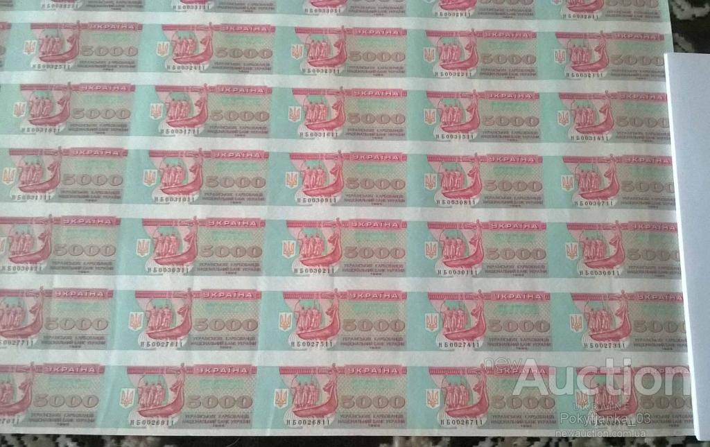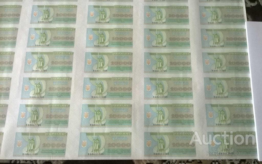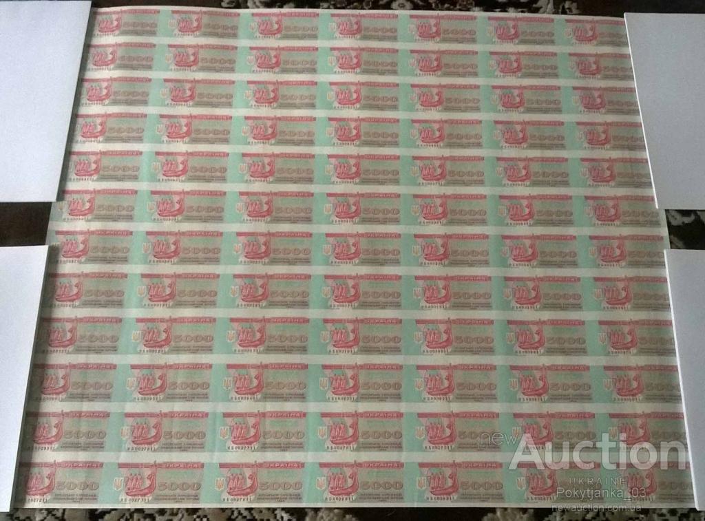 Через мои руки прошло по 2-3 рулона 5000,10000 и 20000 карбованцев. К сожалению я их уже порезал и показать не могу целиком. Но на Ньюаукционе сейчас выставлены такие два листа. Я их использую для иллюстрации и определения тиража.