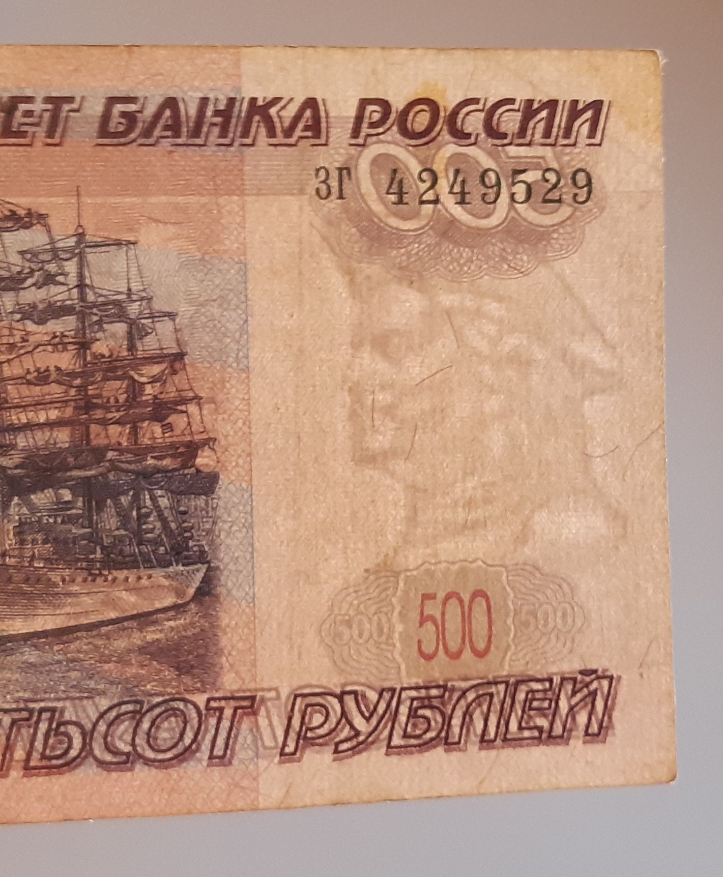 Даже не помню когда последний раз вообще 500-ка без модификации попадалась, а тут ещё и на этой бумаге. Удивлён был, мягко говоря.