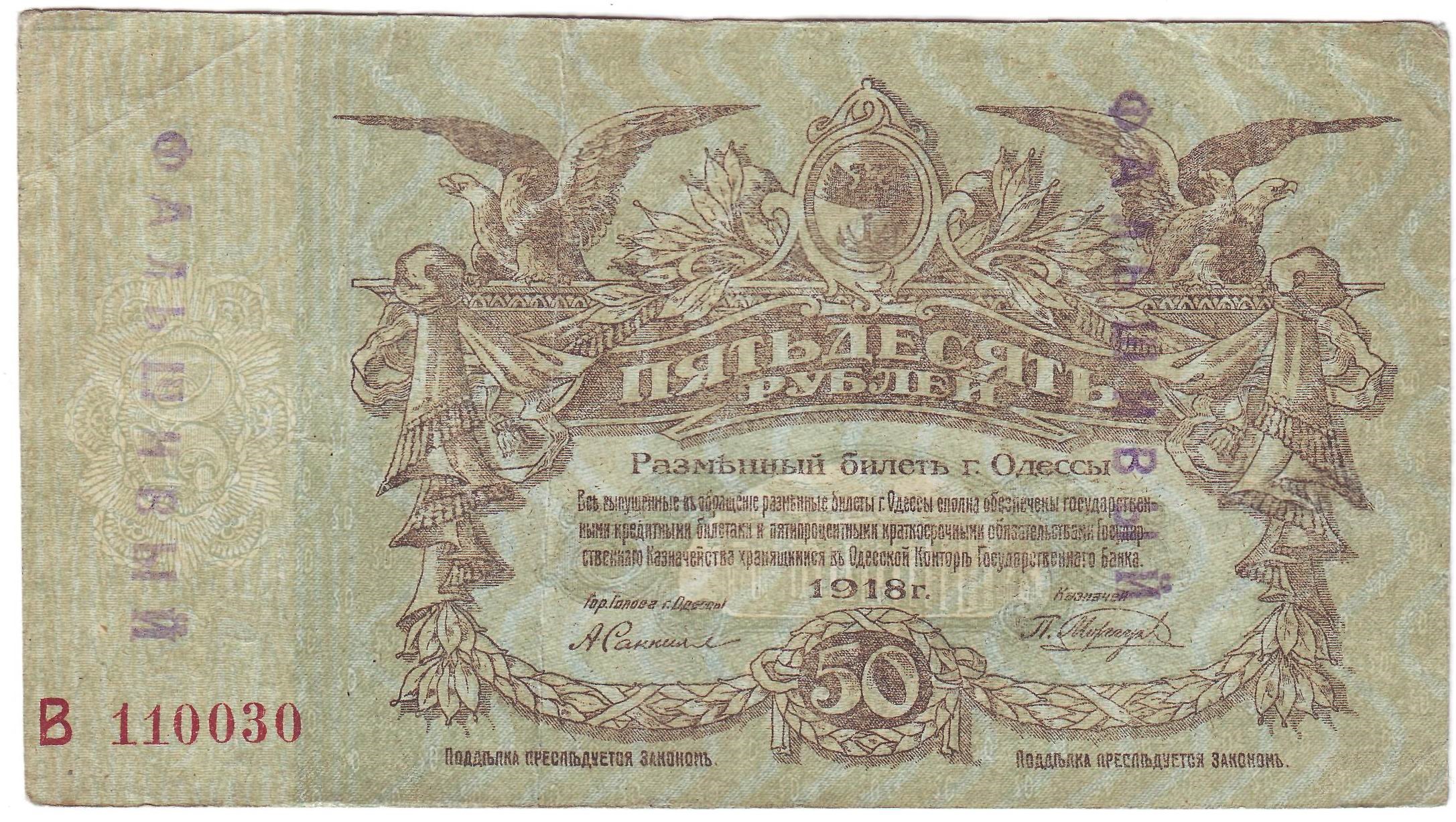 Разменные билеты и марки 1917-1918 гг. Одессы