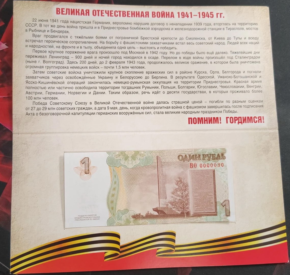 Якобы в 2024 году выпущены "подарочные боны" (как они названы на буклетах) 30 лет введения приднестровского рубля
