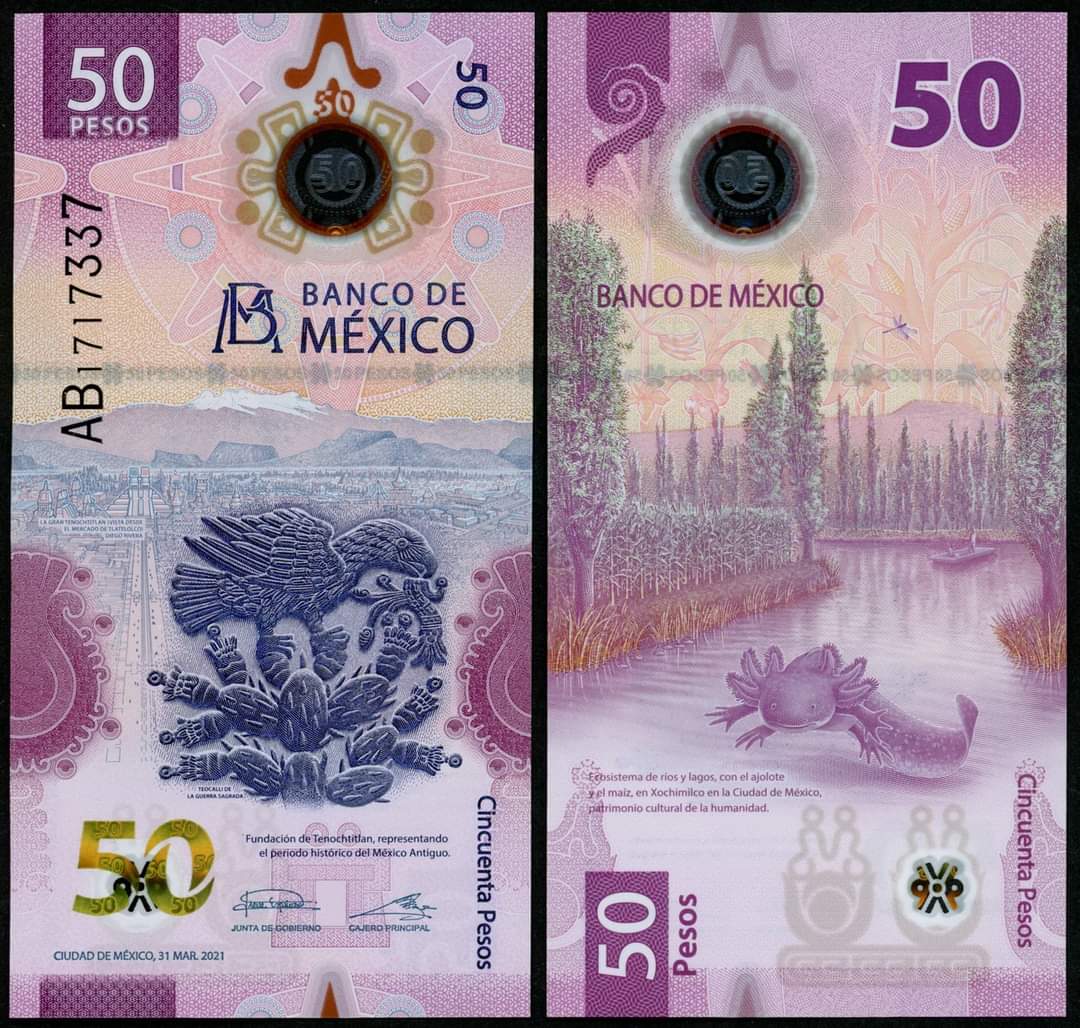 | Банкнотой 2021 года [Скрытый текст] стала полимерная банкнота Мексики номиналом 50 песо.