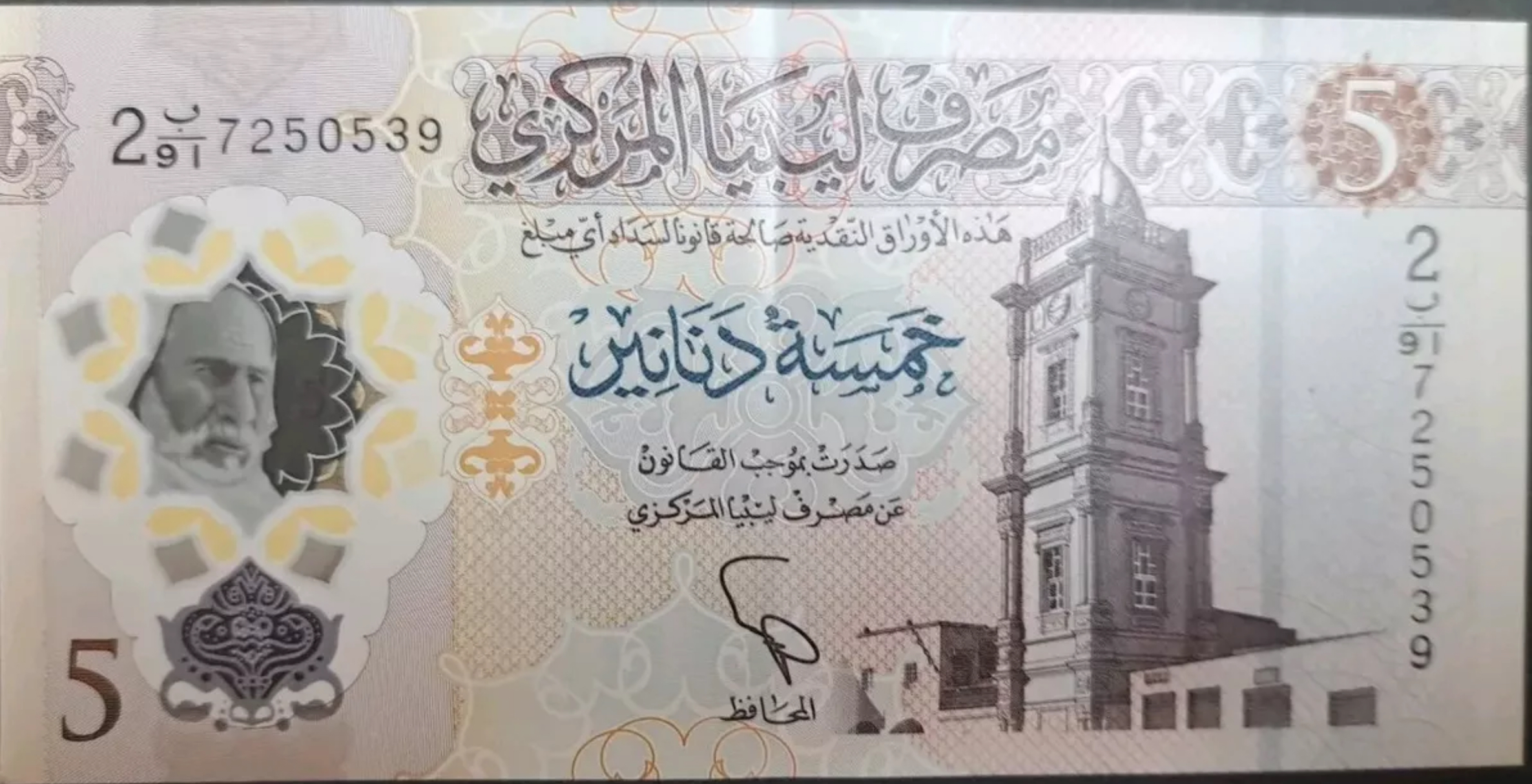 Номинал в 5 динаров вообще более востребован, банкнот выпуска 2021 года было напечатано, судя по серийным номерам, почти 1 миллиард. Это немного странно, учитывая, что население Ливии всего 7 миллионов человек. Вполне возможно, что полимерные пятерки сейчас временно компенсируют нехватку банкнот более высоких номиналов. С выпуском обновленных десяток и новых двадцаток эта проблема может быть частично решена.