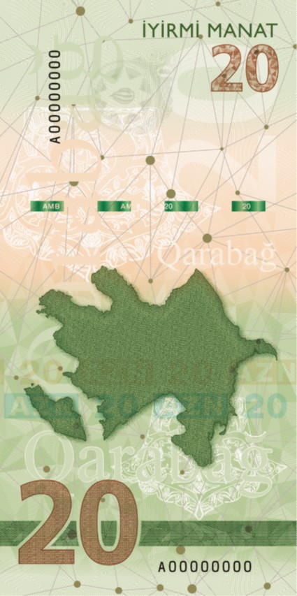 В продолжение процессов системы безопасности и дизайн банкноты номиналом 20 манатов, посвященной теме «Карабах» , были обновлены с применением новейших технологий и инноваций в рамках существующей концепции.