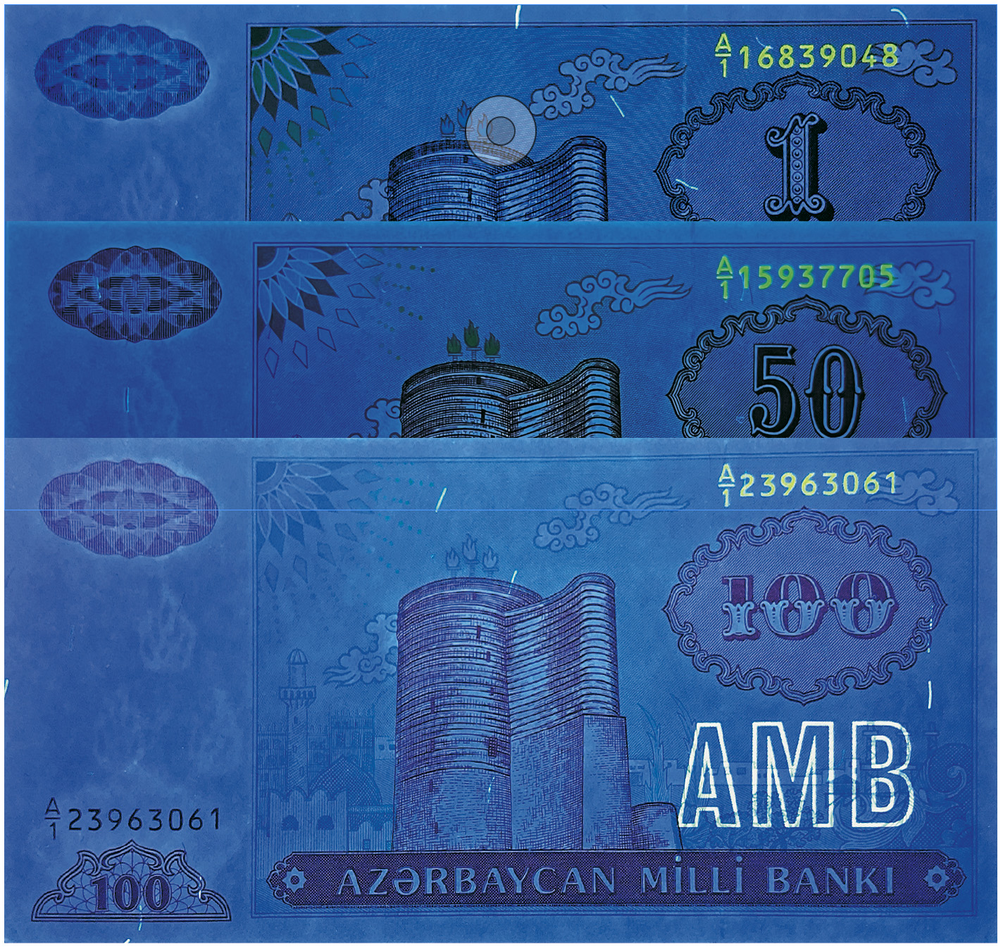 Коллеги, посмотрите у себя в коллекциях, пожалуйста. Банкнота 5 манатов выпуска 1992 года, с дробной серией. Светится ли у вас в УФ серийный номер в правом верхнем углу?