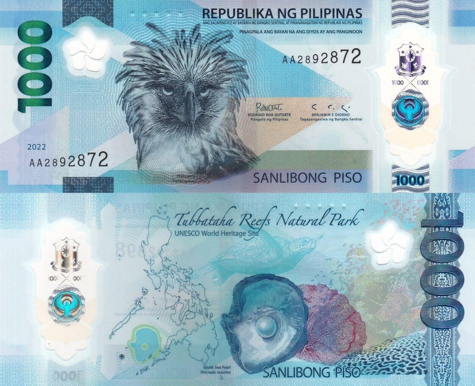 Филиппины 1000 песо 2022 полимер.