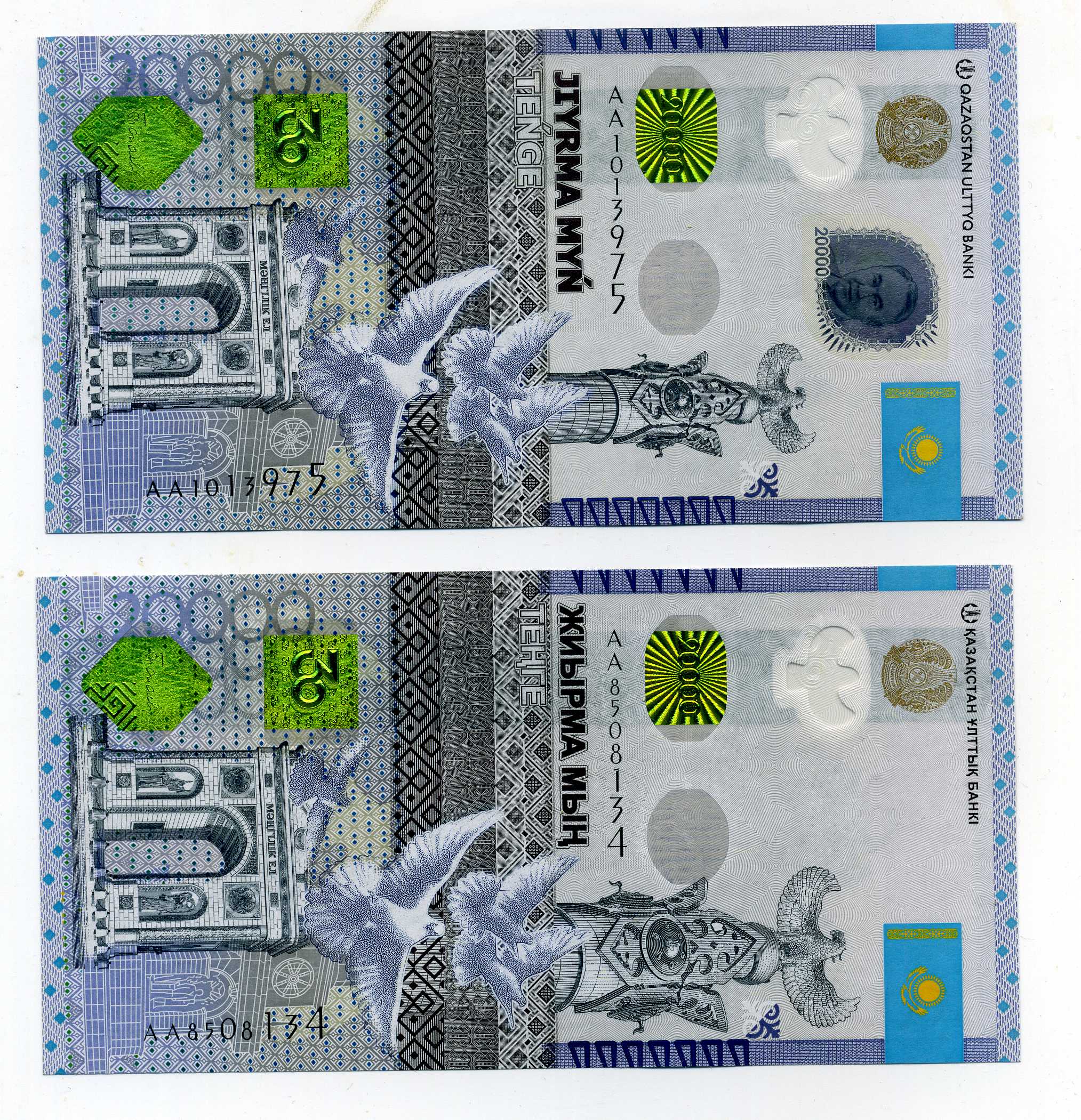 В декабре 2021 году к 30- летию Независимости Казахстана была выпущена памятная банкнота 20000 тенге с изображением Первого президента Казахстана тиражом 3 млн. штук серия АА. В октябре 2022 года была выпущена банкнота в обращение из Серии Сарук 20000 тенге дизайном похоже на памятную, но вместо первого президента изображен беркут и нет голограммы 30 лет, первого президента, а есть беркут, на изображениях видно, тираж данной банкноты уже более 30 млн., в обороте встречал серии: АА, АБ и АГ. Банкнота 20000 тенге является стандартной.