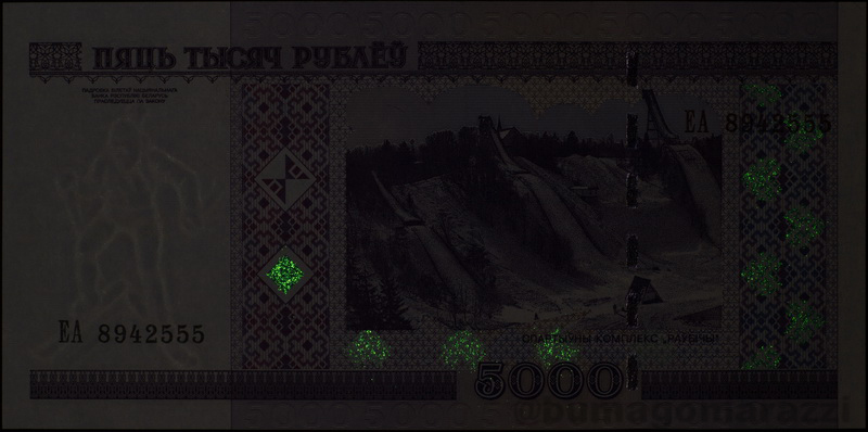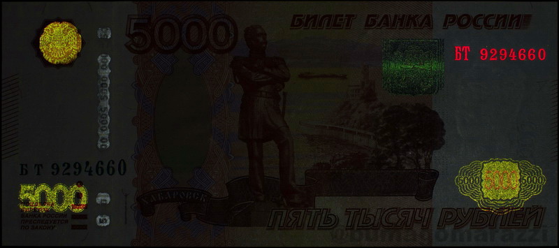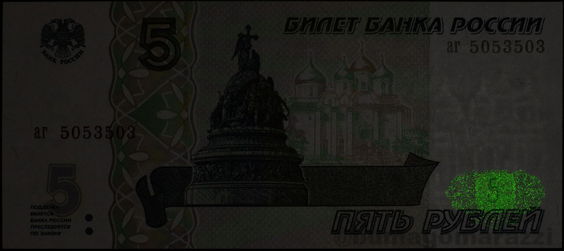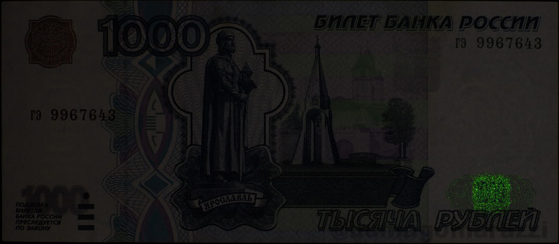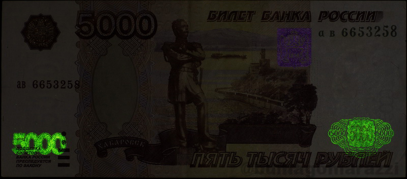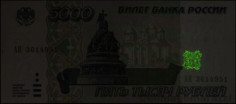 Кстати сказать, номера банкнот 1000 и 5000 рублей модификации 2010 года нанесены "правильным" красным люминофором.