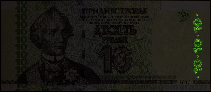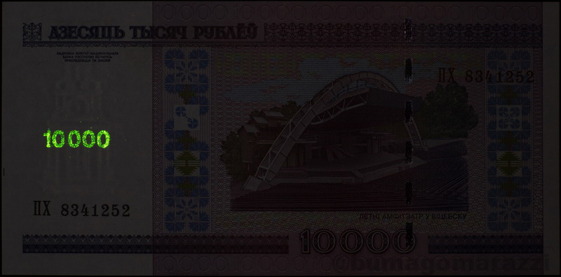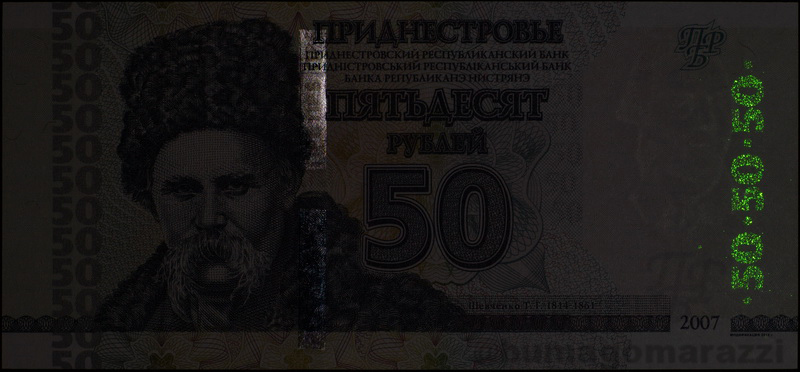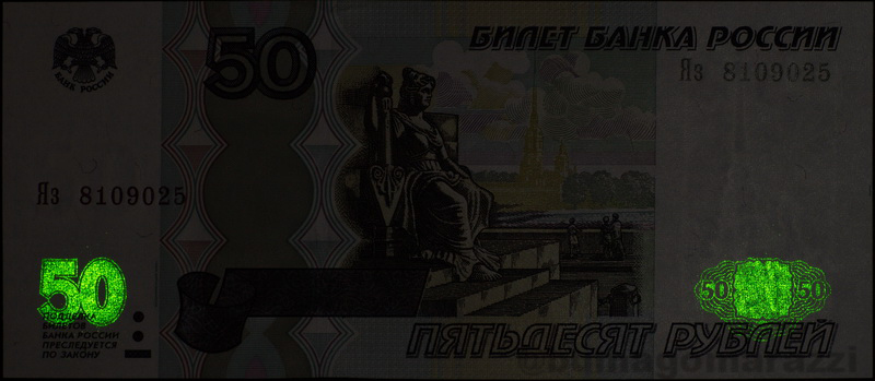 Возможно, крупные номиналы более ранних выпусков тоже имели этот тип защиты, но у меня они отсутствуют. В последней 17 серии уже почти все номиналы (P135, P136, P138, P139) имеют узоры, напечатанные краской с использованием антистоксова люминофора.
