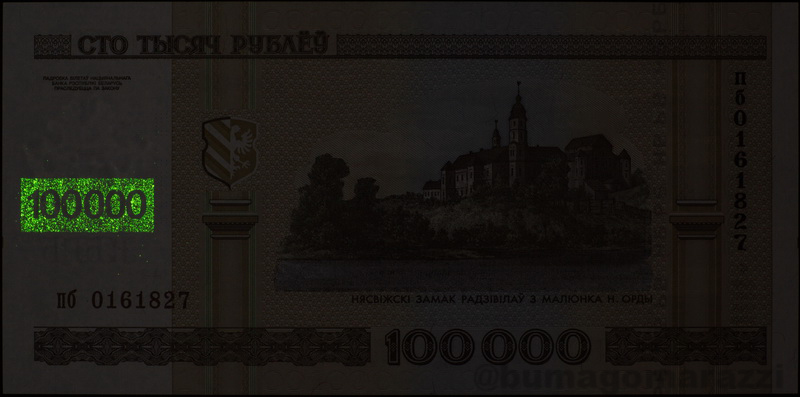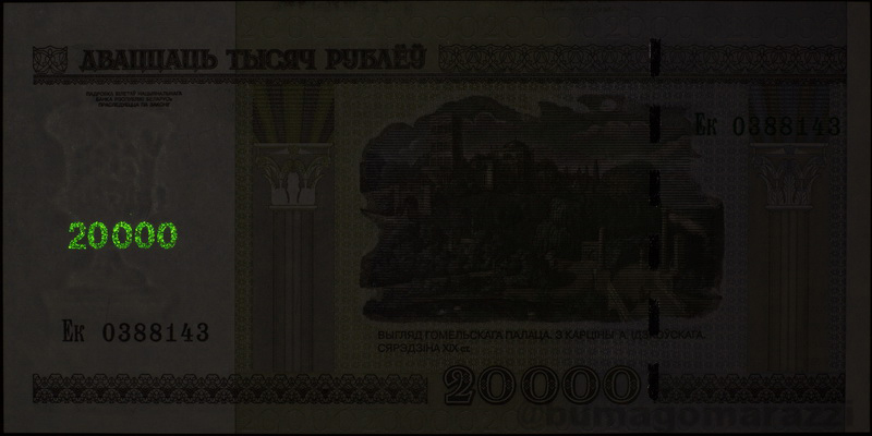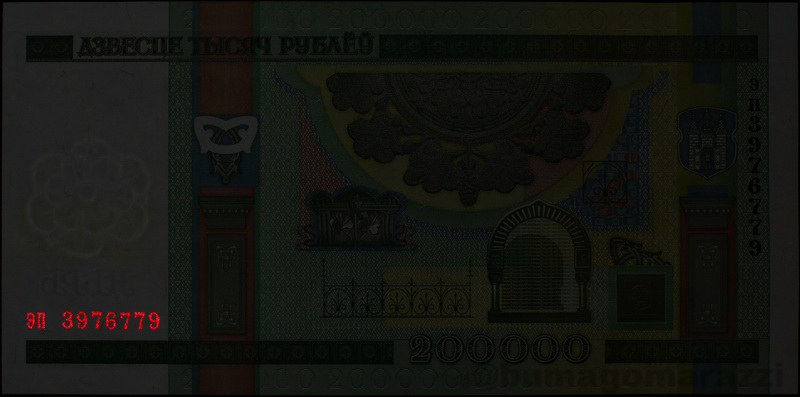 На белорусских рублях предыдущего выпуска (P27-P32, P34, P36). Также можно предположить, что до деноминации 2000 года старшие номиналы тоже имели антистокс-метки, но проверить это не удалось. К сожалению, не владею различными модификациями правописания "Е"-"Я", "кресты"-"орлы" и защитными "неныряющими" полосками, поэтому, возможно, здесь есть какое-то разнообразие, ускользнувшее от меня. Памятные надпечатки типа Миллениума у меня отсутствуют, исследовать их тоже не получилось.