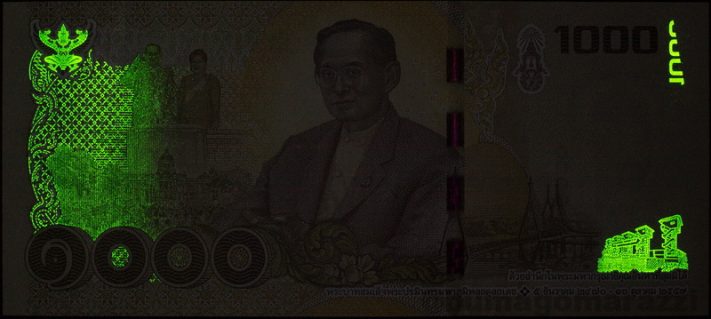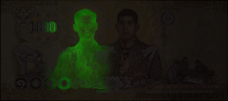 Художественно-узорные метки присутствуют и на многих банкнотах Таиланда, начиная с 16 серии (P118, P119, P122), включая траурный выпуск (P130, P131, P134).