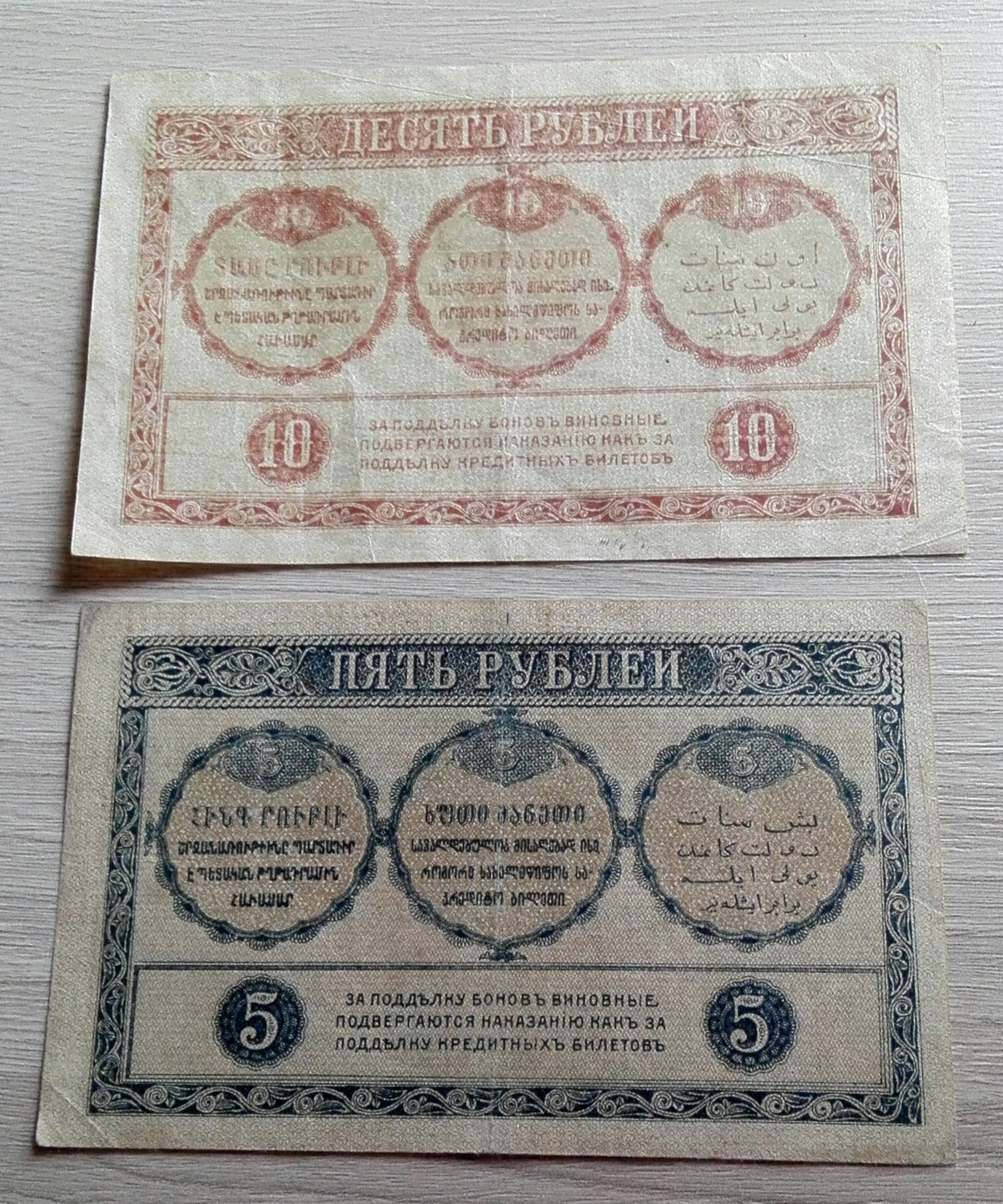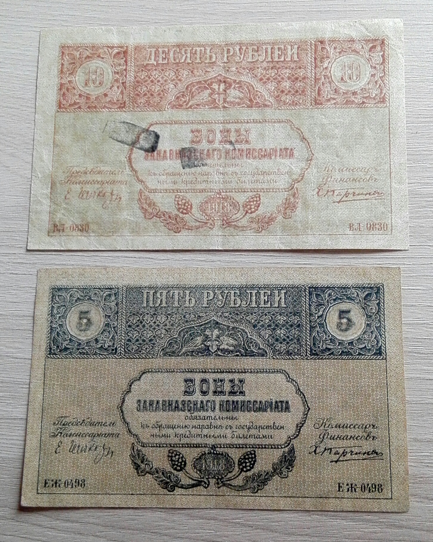 5 и 10 рублей 1918 г Закавказский комиссариат