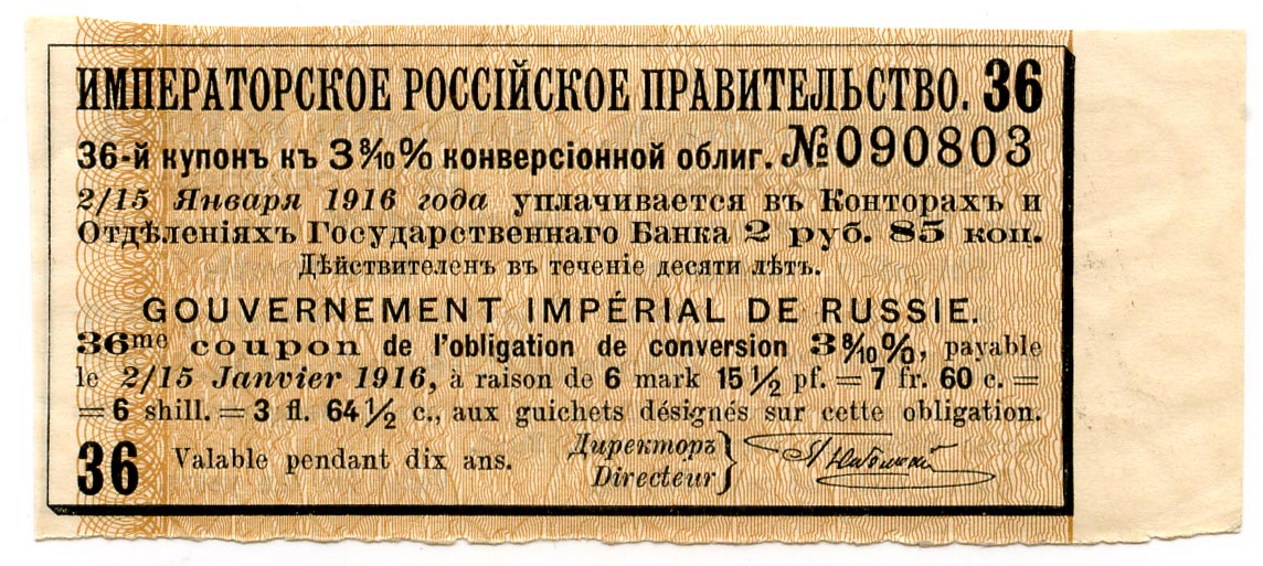 КУПОН 3,8% Конверсионная облигация 2 р. 85 коп.