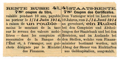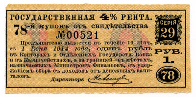 КУПОН Госуд. 4% Рента 1 руб.